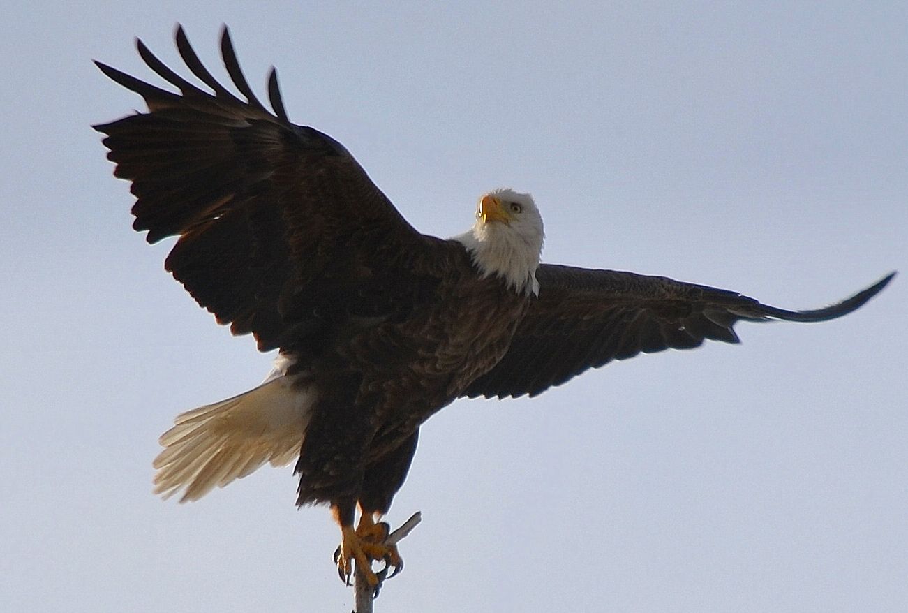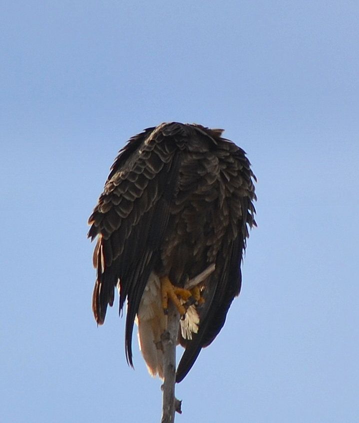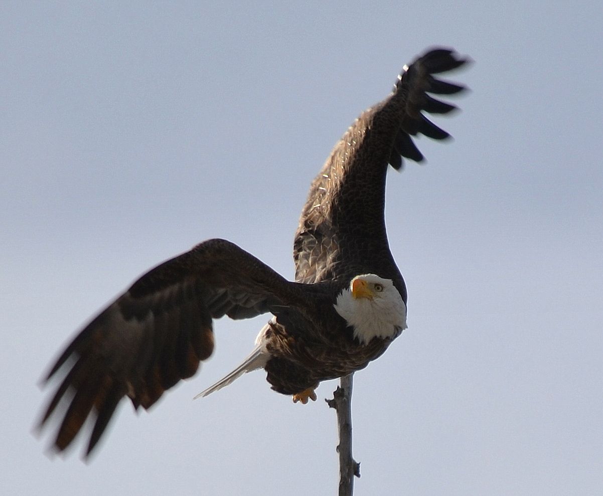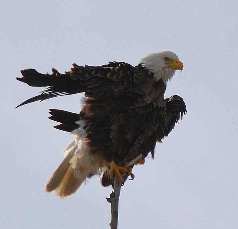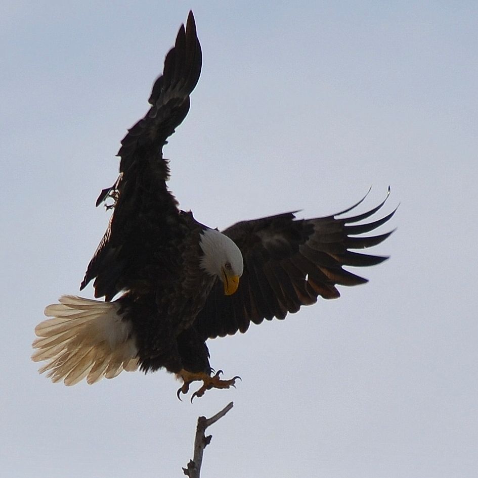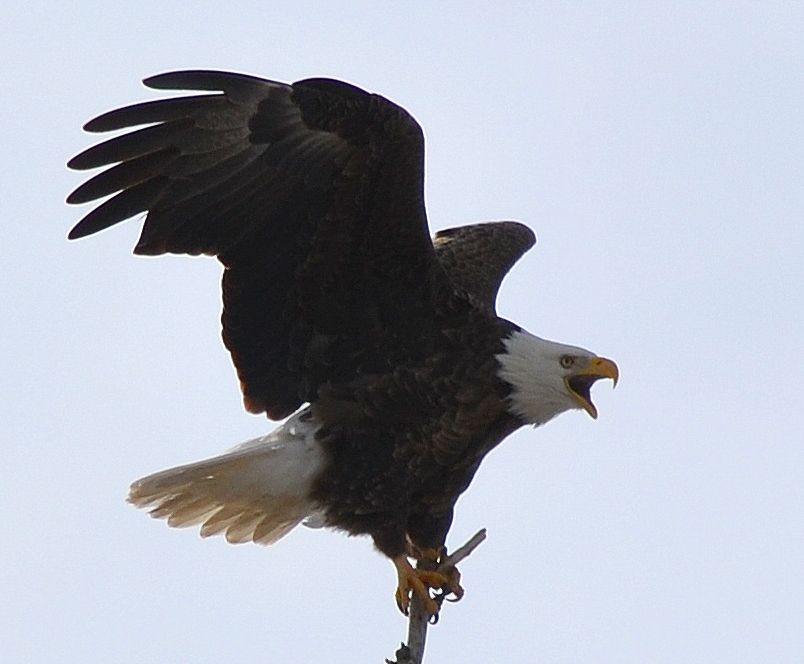 I was in the right place at the right time yesterday and managed to get a couple decent shots of the Bald Eagle around my backyard. Wish I could convey in pictures the sound them screeching, it is very impressive and almost prehistoric sounding.